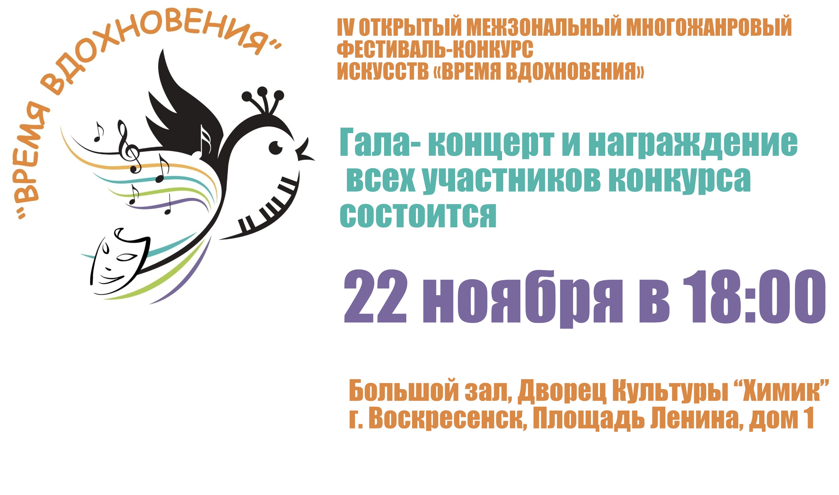 ГАЛА-Концерт IV ОТКРЫТЫЙ МЕЖЗОНАЛЬНОГО МНОГОЖАНРОВОГО ФЕСТИВАЛЯ-КОНКУРСА ИСКУССТВ «ВРЕМЯ ВДОХНОВЕНИЯ»
